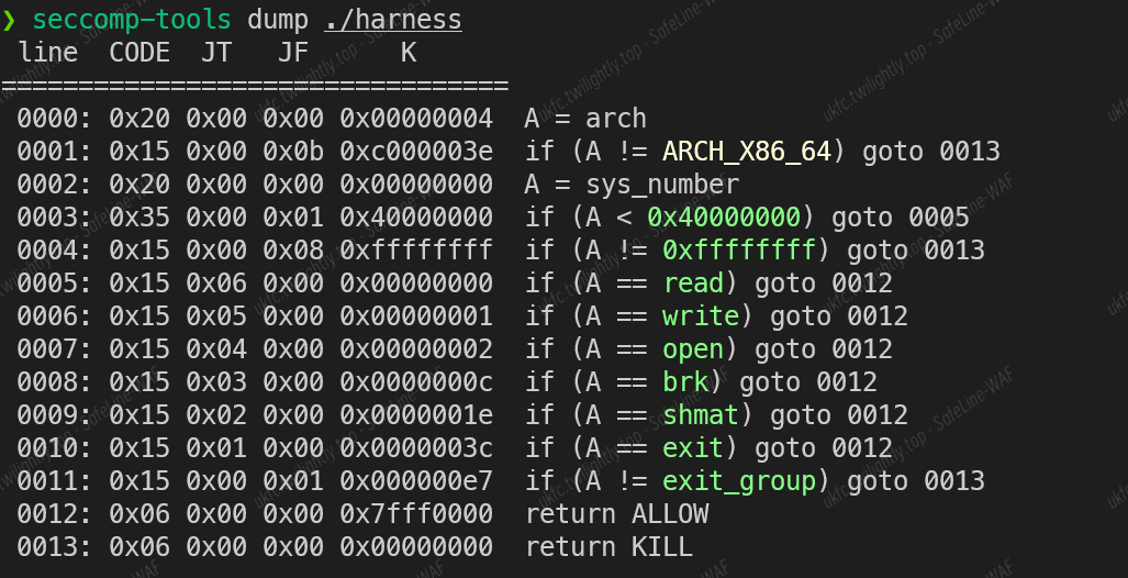 这里还有沙箱保护,我们可以使用 seccomp-tools 查看