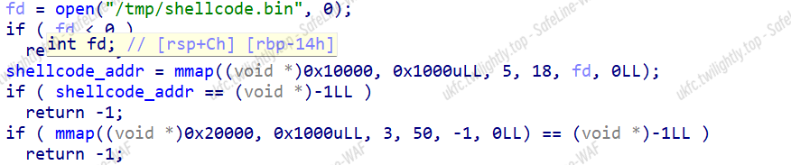 由于似乎这个测试程序实际不会限制 ORW 的 Shellcode ,我们不需要进行一些类似于免杀的优化,直接写就行,唯一的问题可能就是这个 Flag 位置太鸡贼了,实测需要访问 /home/ctf/flag 才能成功