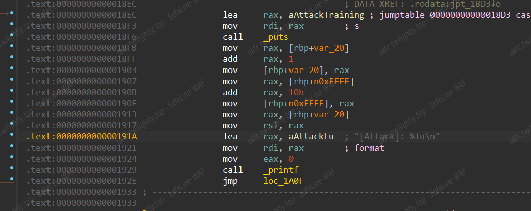 跳到 0x191a 就能泄露地址,但是因为第四位存在随机性,只需要爆破一下就行,概率只需要十六分之一,概率很大。拿到 libc 之后直接打 rop 就行