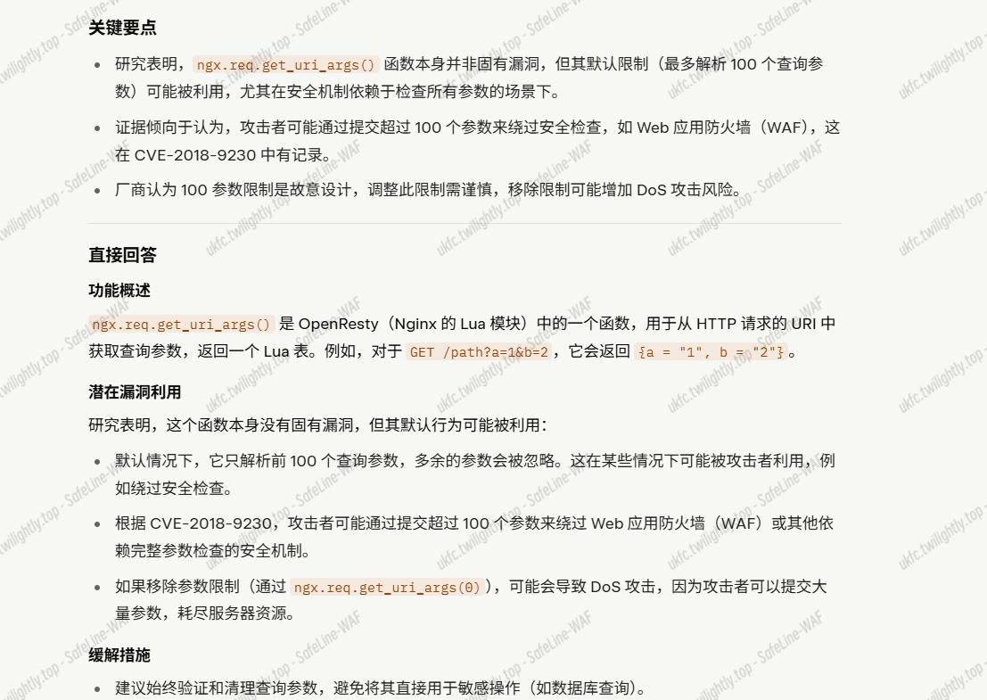 local args = ngx.req.get_uri_args() 在请求参数过多时会出现解析问题,一般的默认长度为 100