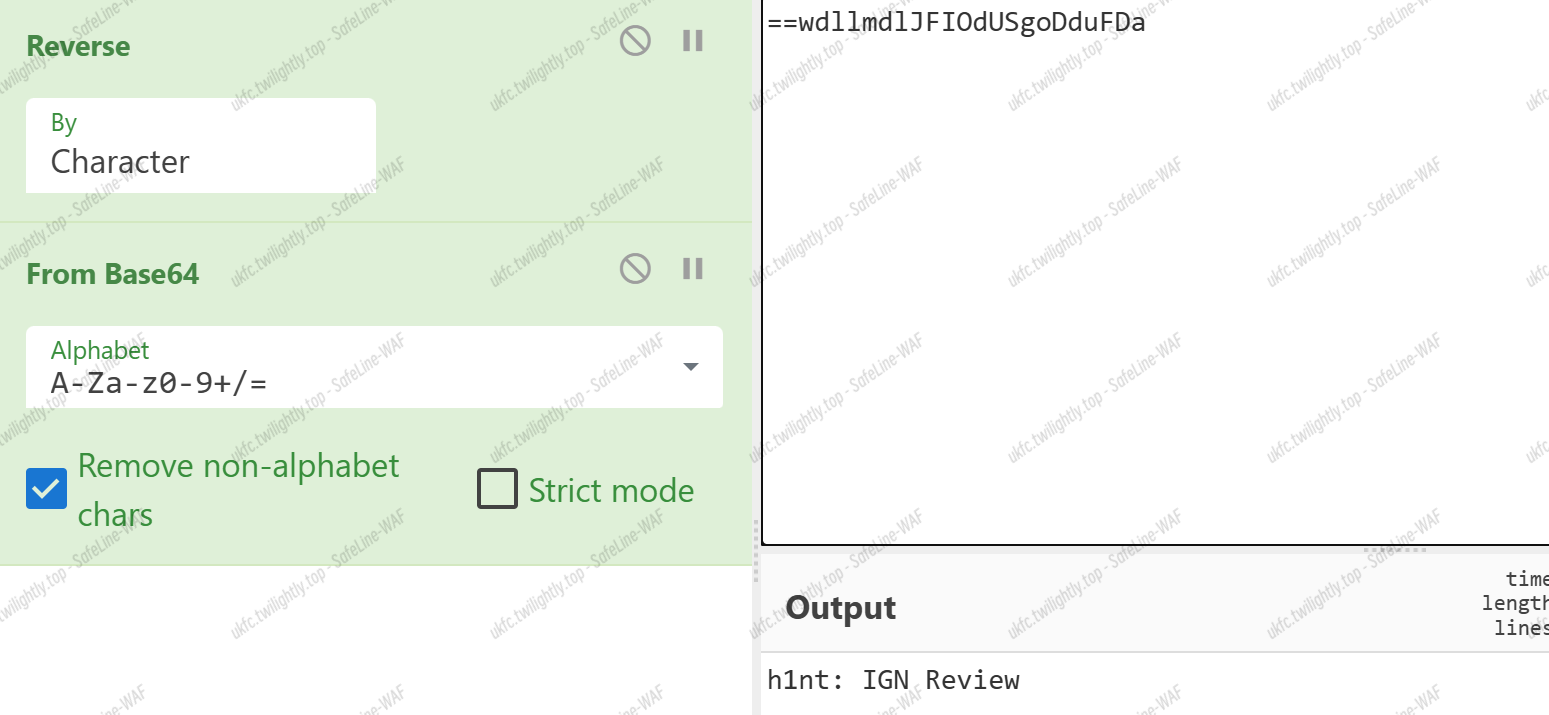 很明显的 base 特征,字符串逆序,解 base64 得到 hint: