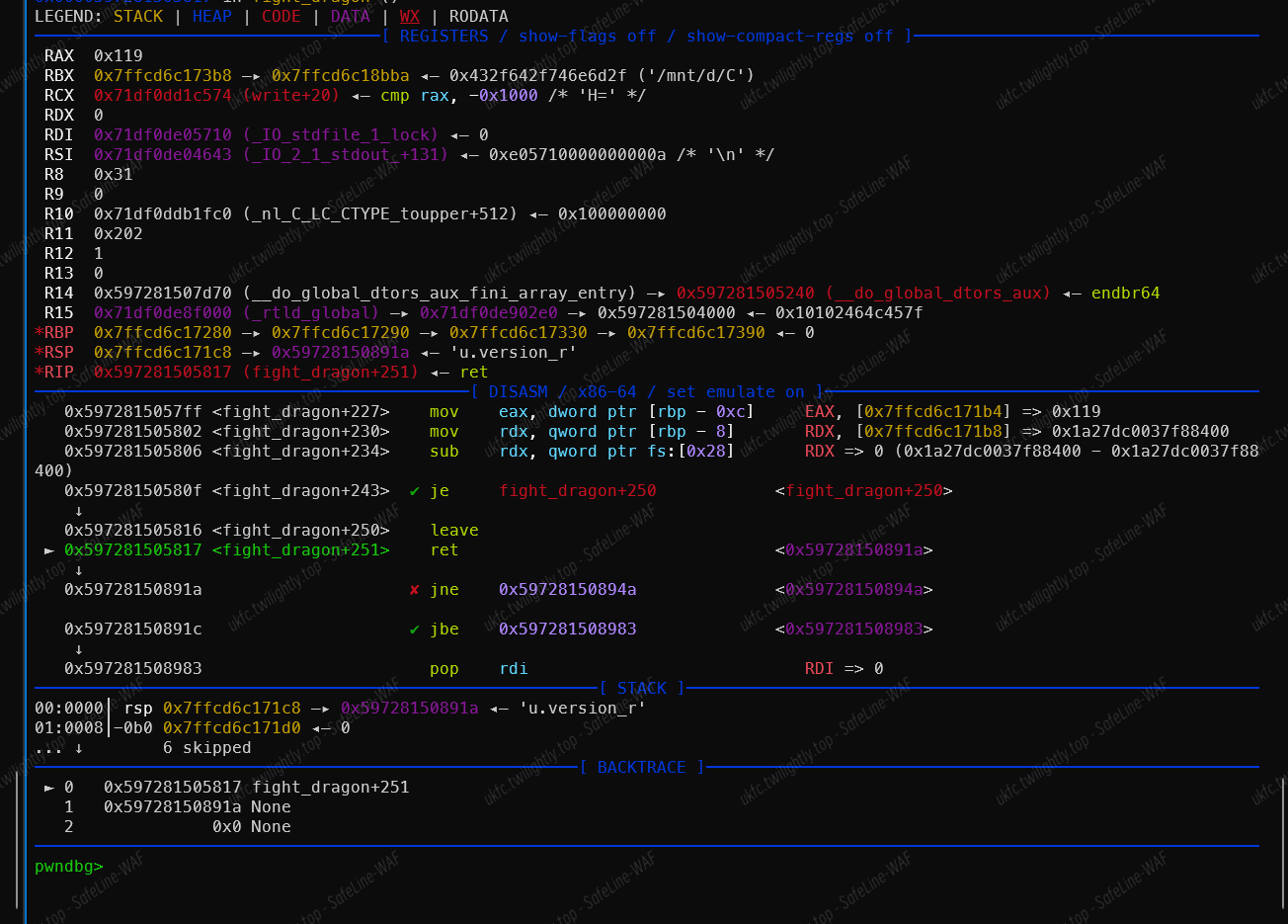 这串奇怪的数字是直接写死在代码中的,利用错位可以找到 0x5d 也就是"pop rbp",配合 off by null 可以在不 leak 的前提下修改 rbp 的值到 heap 上,由于管理 heap 地址的结构放在 game 函数的栈帧上,所以修改 rbp 之后就可以通过输出 hp attack pwoer 的值来 leak 得到 heap 上的数据,即 libc_base,需要事先布置堆风水,之后将 rop 链写到 heap 上从 game 函数返回