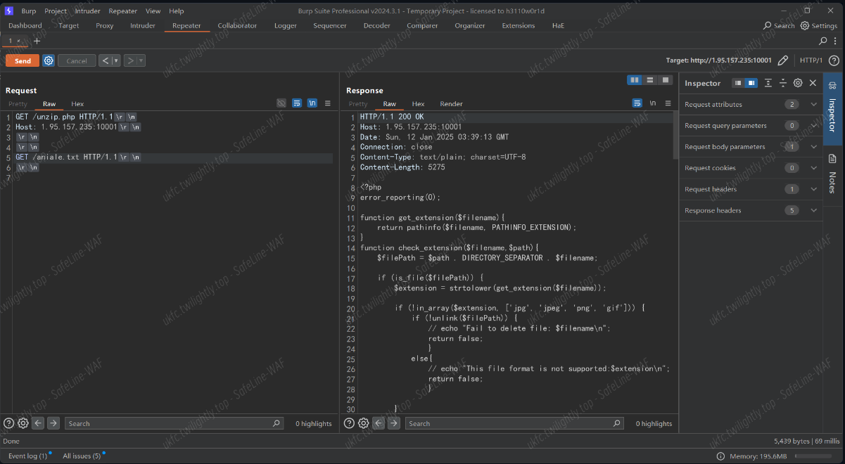 正常上传一次观察发包记录,有一个 unzip.php 文件,利用之前羊城杯时候的源码泄露漏洞获取源码