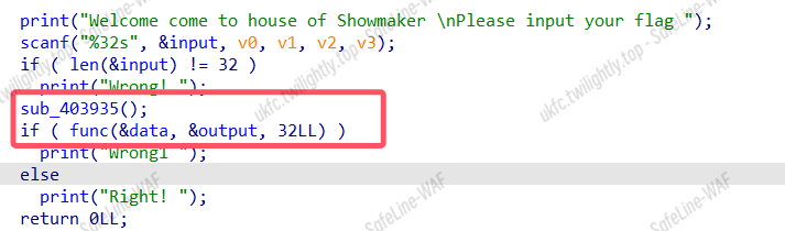 长度 32,func 里面是用 AVX2 指令集的汇编,就是一个比较函数,重点看 sub_403935
