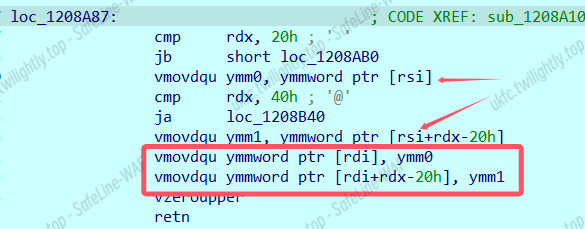 下断点一直跟踪到这个地方发现 rsi 赋值给 rdi(两次赋值,一次 16 个),下一步是回溯看 rsi 的值哪来的