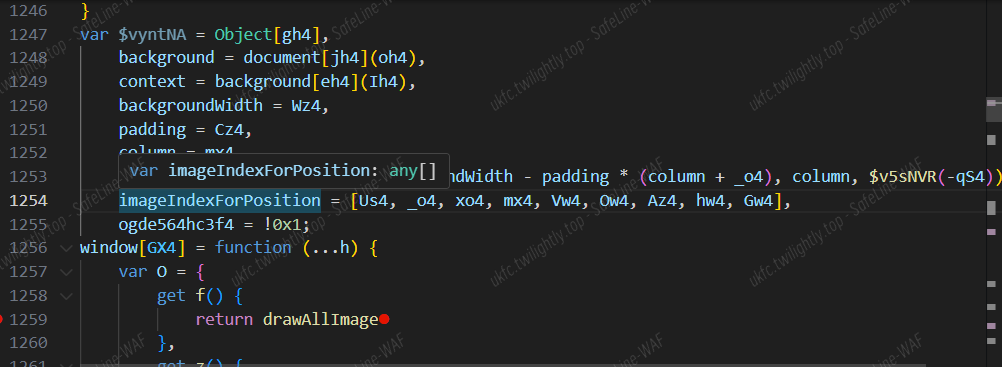 在 js 文件中找可疑点,不断尝试,发现有个 checkiffinish 函数,return imageIndexForPosition,盲猜 rangeindexposition 给图片随机定位跟这个变量有关,找 imageIndexForPosition 的引用,发现有赋值点,将赋值点改为下图的值