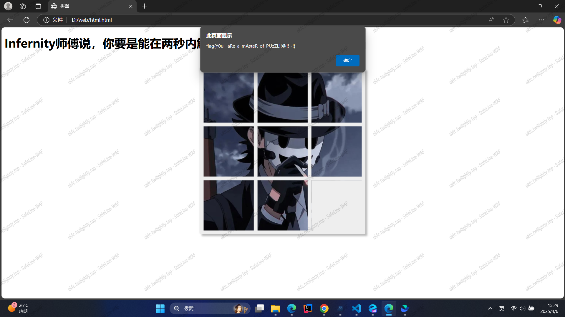 运行网站后略微修改一下拼图即可弹出 flag