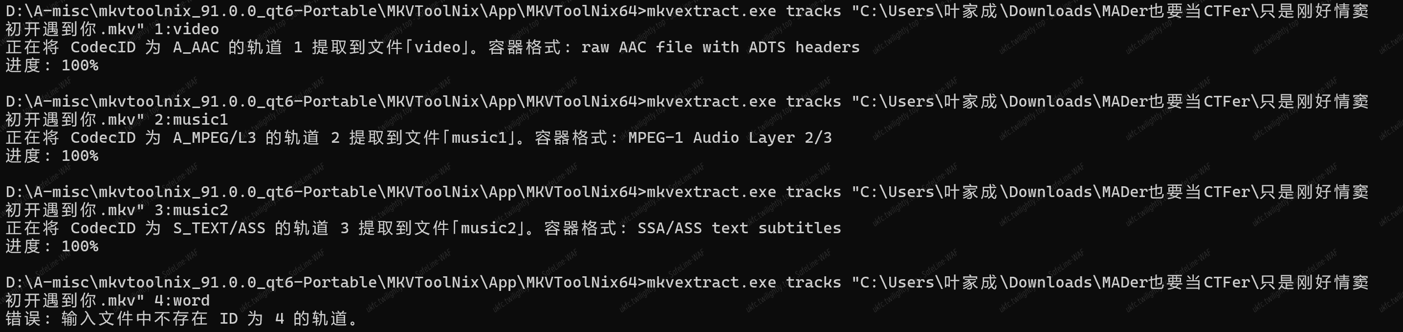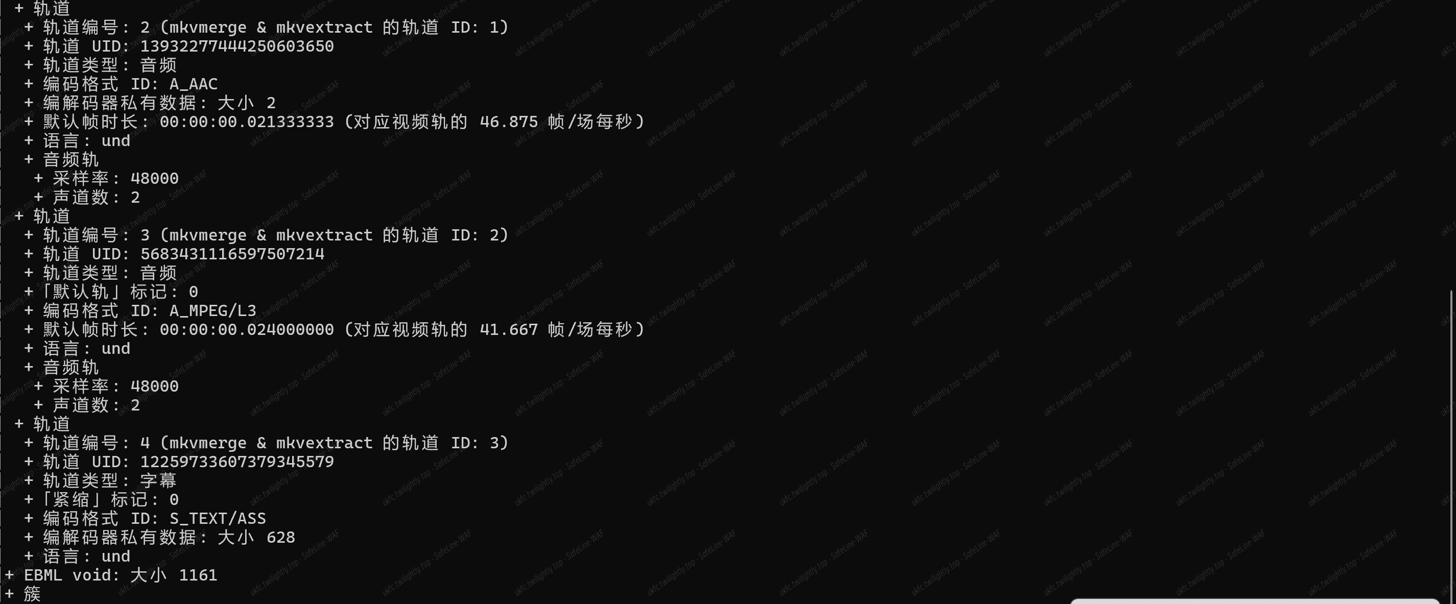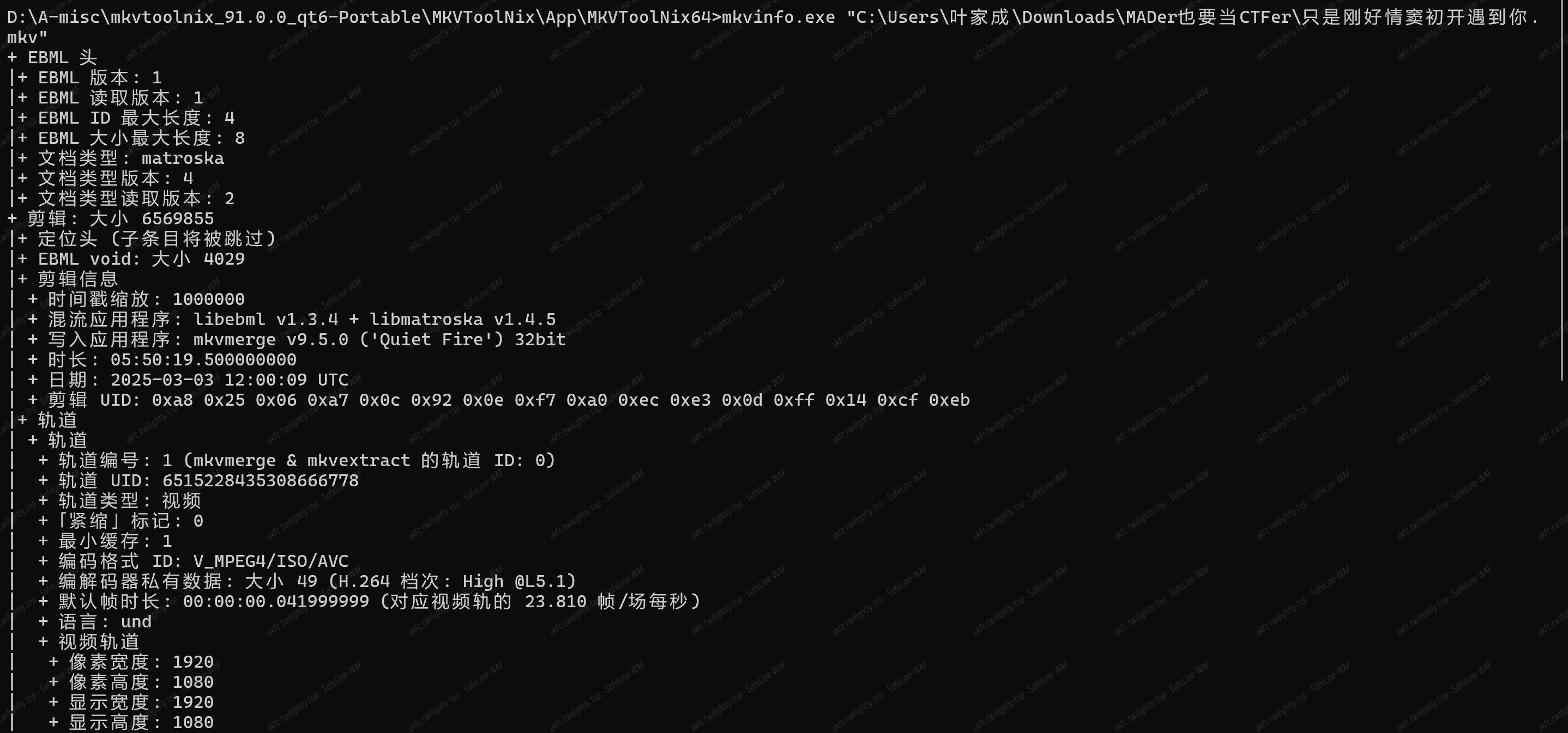 那么我们就可以用到该文件夹的 mkvinfo.exe 来分析得到:
