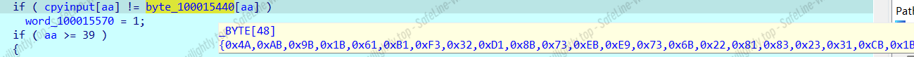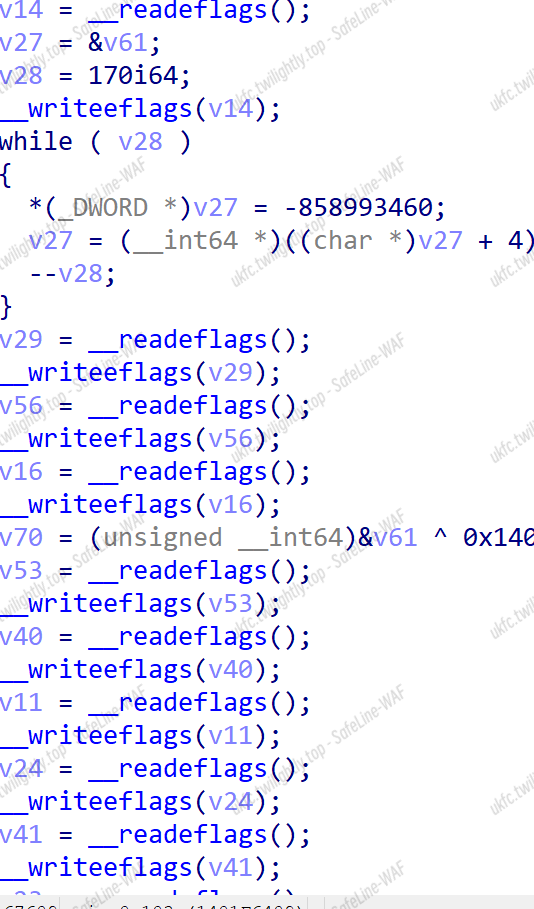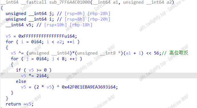位运算这玩意好像逆不出来,它是相邻两个两个字节异或,于是直接爆破,v5 要每次循环要重置。由于返回的时候是取反,所以直接手动把密文异或 0xFFFFFFFFFFFFFFFF 再爆破: