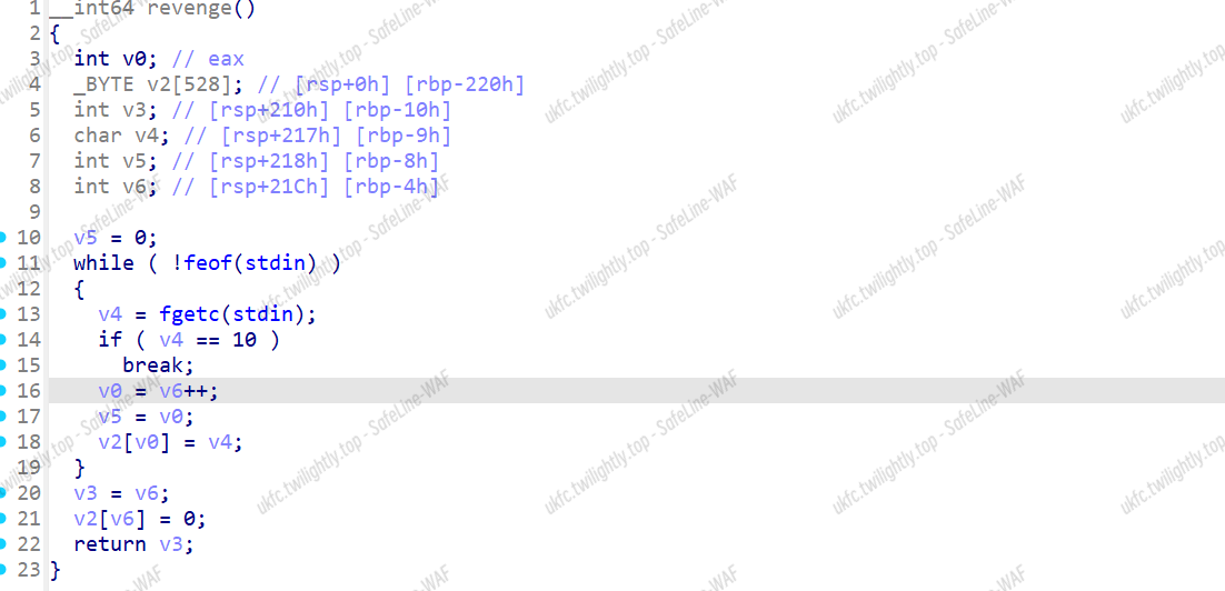 题目主函数实现了类似 gets 函数功能,可以 stack 溢出